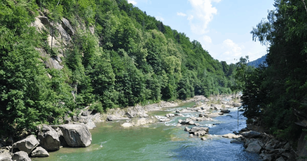 У «тихі» дні саме тут найкраще відчувається природа безлюдних місць: довгі ділянки без забудови, зелені тераси над руслом і звук камінців під хвилею, коли течія злегка піднімається на перекатах.